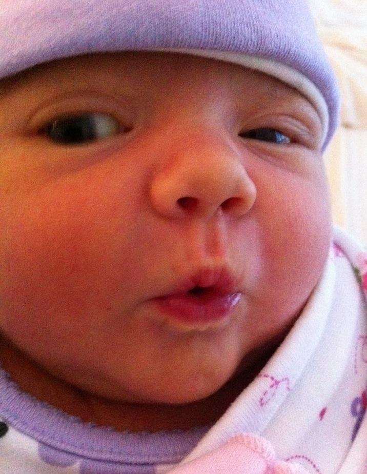 Here is our 7 week old angel! Doing what she does best! I must also put in there that she is only 7 weeks old and wearing 6 month clothes. She is too long for the 3 month clothes. Her pediatritian, Dr. Grooms said that the computer said error for her height at her age because she was off the charts haha. She was also in the 75% for weight last time. We go back for her 2 month shots next week and I will update then if not before!